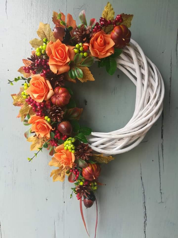 Selská dekorace dřevěný malovaný džbán se sušinou.