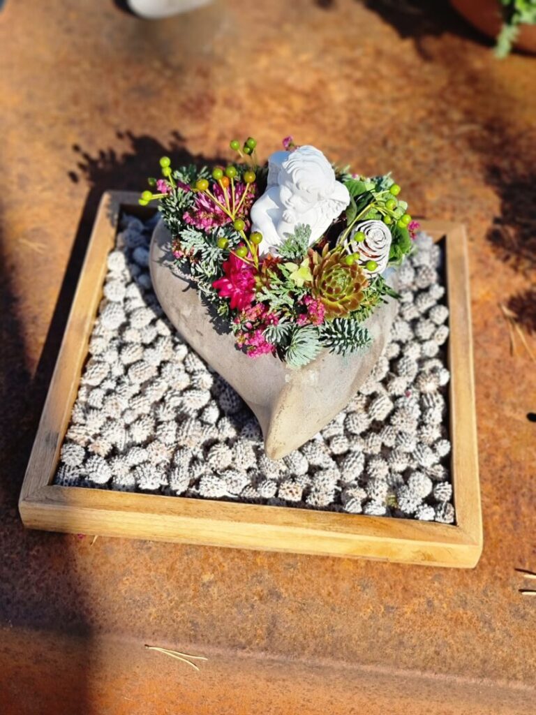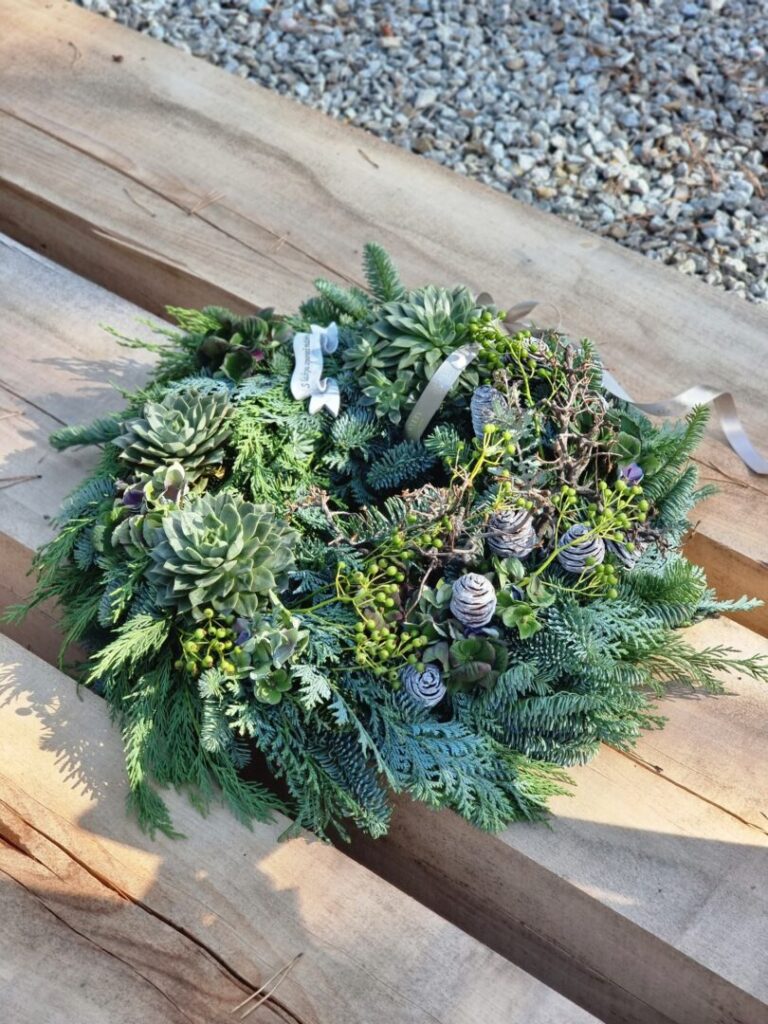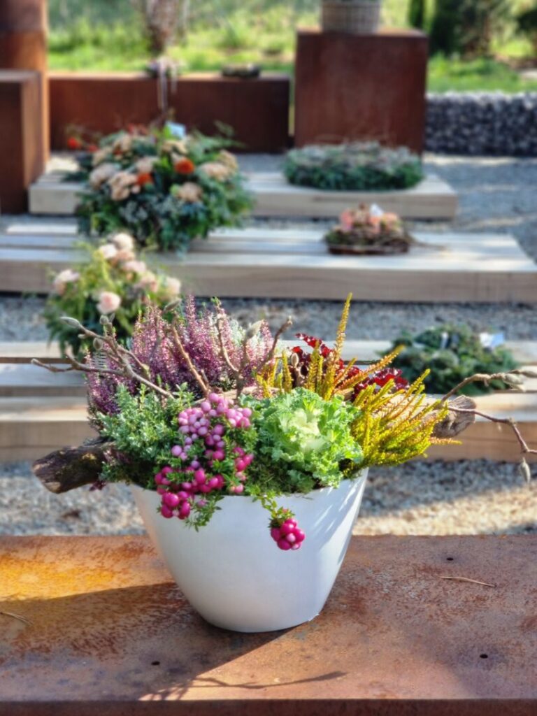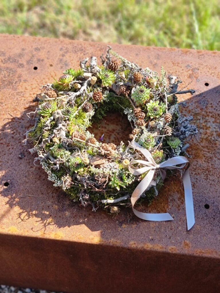 Jednou z tém workshopu boli prírodné Dušičky – aranžmány s hlbším rozmerom, vytvorené zo živých halúzok, machu, konárov a kvetov. Silvia Pavúrová predstavila moderný a pritom ekologický prístup k tvorbe spomienkových aranžmánov, ktoré prinášajú nielen estetický, ale aj hlbší rozmer – spojenie s prírodou a udržateľnosť.
