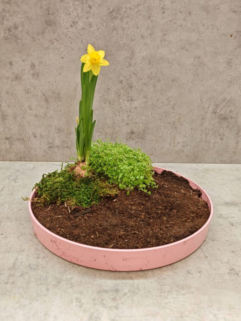 Po okrajoch podnosu umiestnime menšie Narcissus.